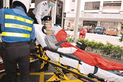 ■遭包裝機壓傷雙手的工人,由救護員送院。