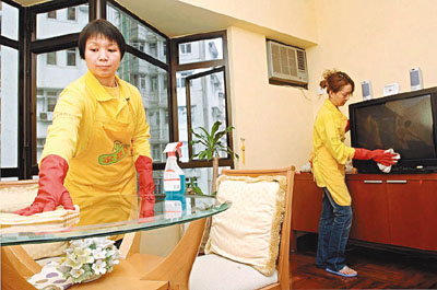 ■由家務助理組成的「大掃除特工隊」,新年期間頻頻出動,收入隨時逾萬。本報記者李志樑 攝