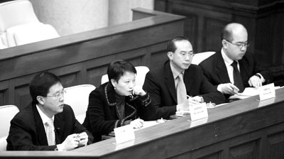 ■林瑞麟(左一)表示,按《基本法》,行政長官競選連任時可以繼續履行職務,不須休假。 本報記者高仲明 攝