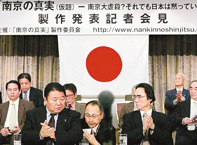 ■日本右翼昨舉行記者會,宣布否認南京大屠殺的拍片計劃。美聯社