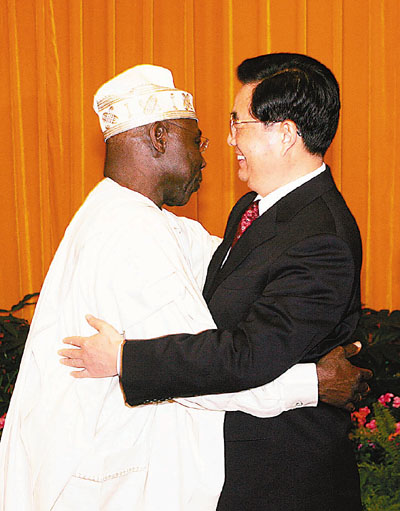 ■圖為去年中非論壇期間,胡錦濤會見尼日利亞總統奧巴桑喬。中新社