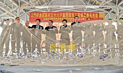 【本報訊】(記者 聶曉輝)歷經40載風霜的大埔三門仔漁民新村,是本港歷史最悠久的漁民村之一,奈何村民缺乏經費,以致單位日久失修,出現天花破裂、漏水,外牆石屎剝落等情況,危機處處。在民建聯立法會議員黃容根及民政事務處的協助下,終找得熱心人士吳守基以個人名義捐出60萬元為村民進行翻新工程,並於短短數月內竣工。