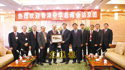 【本報記者沈清麗北京25日電】香港中華總商會今日在北京進行最後一天訪問行程,先後與全國政協副主席、全國工商聯主席黃孟復,國家商務部副部長廖曉淇和國家稅務總局副局長王力會面。在結束北京之行時,會長霍震寰接受傳媒採訪時表示,感謝中央統戰部和中聯辦的精心安排。而此行既達到了訪問目的,也進一步明確國家未來的經濟發展路向。
