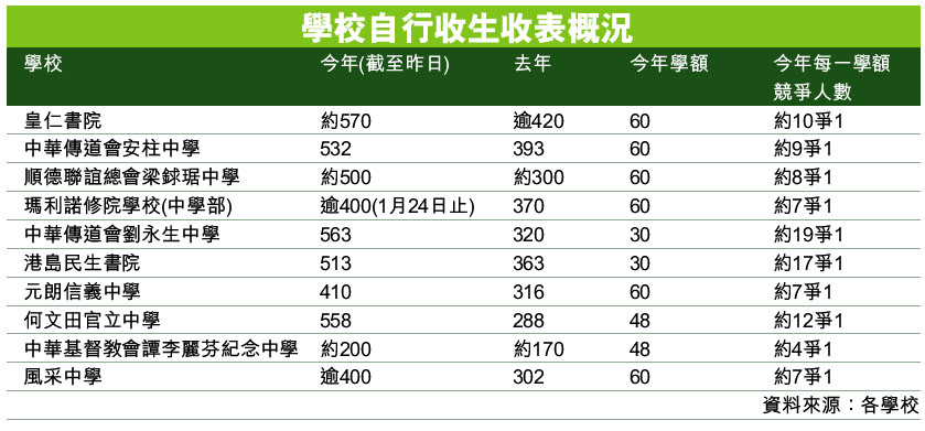學校自行收生收表概況 (圖)