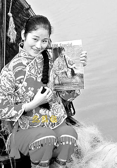 浙江姑娘謝永芳(見圖)—武漢體育學院的優秀畢業生,1998年浙江省跆拳道47公斤級冠軍—以一個大辮子漁家姑娘的形象,登上了《聯合國特刊》的封面。
