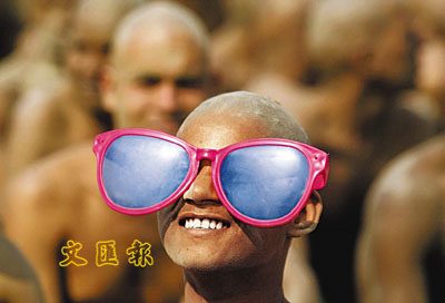 ■印度太陽特別猛烈?有圖為證。連有滿天神佛庇佑的僧人都要戴上「太陽鏡」擋一擋。