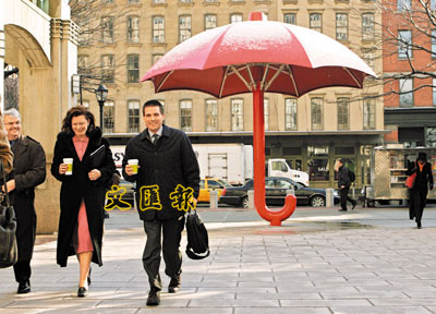 ■所謂「樹大好遮蔭」,那麼傘大的意思又可否借來一用?這把大雨傘雕塑位於紐約花旗集團總部門外,既是集團的代表徽號,又能在下雨時幫幫忙,集觀賞和實用功能於一身,「好使又好用」。