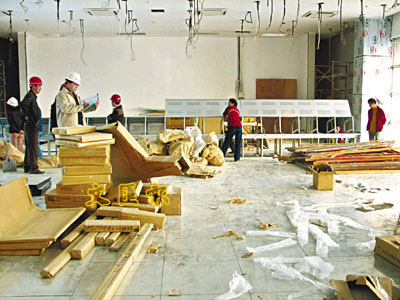 ■口岸綜合辦公樓5樓的交通監控中心裝修工程正進行得如火如荼。