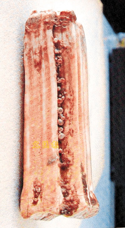 ■供奉於應縣木塔內的佛牙舍利。可見佛牙上方增生舍利,晶圓剔透,虹光熠耀。