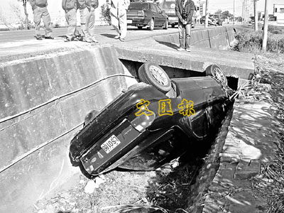 台19線公路嘉義縣六腳段28日下午發生一起離奇車禍,一輛自用小客車因遭遇強風,竟被強風吹落路旁水溝,車內4名大人分別受到輕重傷,另1名小孩受到驚嚇。 中央社