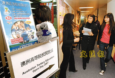 ■經濟復甦,近年港生到澳洲留學數字有上升。圖為較早前舉辦的澳洲升學展情況,反應熱烈。