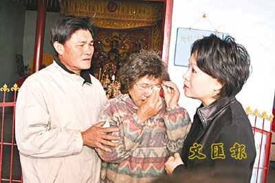 ■台東縣長鄺麗貞 (右)29日上午前往台東市楊傳廣故居,慰問楊傳廣的胞妹楊秀梅 (中)和家人。中央社