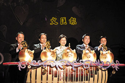 ■民政事務局常任秘書長林鄭月娥(中)、劉金國主席(左二)及籌委會成員主持亮燈儀式。
