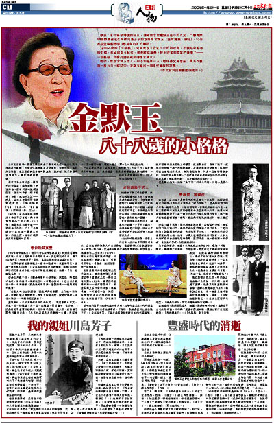 編按:末代皇帝溥儀的侄女,清朝第十世肅親王最小的女兒、二戰期間中國戰區著名女間諜川島芳子的親妹妹金默玉(愛新覺羅.顯琦),10日前接受鳳凰衛視《魯豫有約》的專訪。