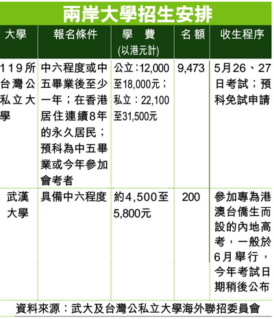 兩岸大學招生安排 (圖)