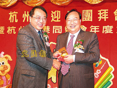 3位榮譽會長中,吳家瑋、徐立之兩位著名教授都是杭州人,徐立之教授的父親徐正旅先生,還是杭州旅港同鄉會1976年成立時的創會會長,惟獨張浚生是福建人。不過,張浚生說自己雖是福建人,然自1954年起已經在杭州生活,即使說杭州是他的第二故鄉,都好像已經不確切了,因他於家鄉只生活18年,在杭州卻前後生活了53年!凡是杭州的事,總是令他牽腸掛肚。現場徐起綱會長聞言,即刻起身作證,說他記得多少年來凡是同鄉會開大會,張副社長與現在已經擔任杭州市政府外事辦主任的鄭浙民均逢請必到。