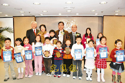 ■兒童繪畫比賽獲獎小學生展示獎狀。