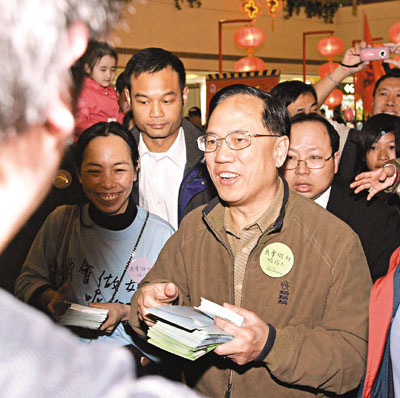 ■當勞巡區,態度謙恭,民眾受落。 本報記者潘達文 攝