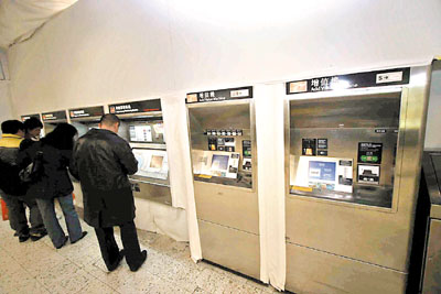 ■全港地鐵及九鐵車站的八達通增值機,昨深夜起暫停接受易辦事(EPS)增值。 本報記者鄺福強 攝