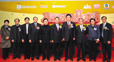 【本報訊】(記者 鄭群)香港基本法推介聯席會議昨晚於將軍澳電視城舉辦「攜手唱和《基本法》」總決賽暨綜合晚會,中聯辦副主任李剛、立法會主席范徐麗泰、政制事務局副秘書長何健華蒞臨主禮,演繹組及MV組最後6強參賽單位作最後競逐,晚會並邀知名人士及亞運金牌選手及歌星擔任表演嘉賓,以輕鬆的手法、精彩的演唱向市民推介《基本法》與市民生活息息相關。