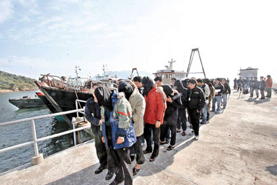 【本報訊】隨著國際油價下滑,限制海上供給燃料水域的新海事法例在上月生效後,另一個位於橫瀾島以東,接近內地水界的宋崗海域,迅速冒起成為一個新興海上走私紅油熱點。海關經一周部署,昨首次在該非指定供給燃料水域,成功偵破一宗利用改裝漁船,以螞蟻搬家方式走私紅油的非法活動,截獲3艘目標漁船,檢獲15萬公升,總值60萬元的紅油,行動中13名內地男子被捕扣查。