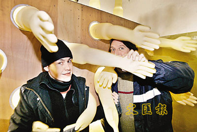 膠手套一向給人的印象是工作又再工作,但法國藝術家布迪斯及葦頓度,就在愛沙尼亞的塔林燈飾展覽上,發表他們名為「G-Lov(v)eBox」的裝置藝術展:一隻隻受摩打自動充氣或放氣的Latex膠手套,安裝在牆上的木盒。活動時一放一充,仿如一隻隻手向在場觀眾張牙舞爪,非常詭異。