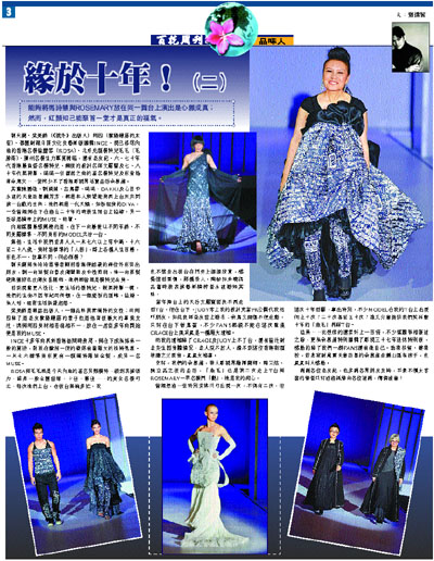 當年舞台上的天后文麗賢堅決不再走回T台,但在台下,JUDY穿上我的設計充當PR公關代我招呼朋友,如此良師益友世上難求;余嘉文腿傷不便走動,只好在台下做嘉賓,不少FANS都說不能在這次重溫GRACE台上風采真是一種極大遺憾。