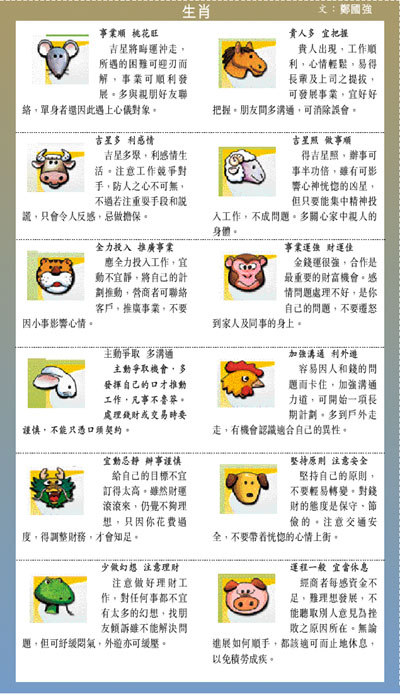 吉星多聚,利感情生活。注意工作競爭對手,防人之心不可無,不過若注重耍手段和說謊,只會令人反感,忌做擔保。