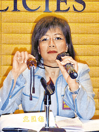 ■國泰空中服務員工會主席關笑華手持因工傷請病假,被公司要求離職者送贈的紀念品。本報記者梁嘉儀 攝