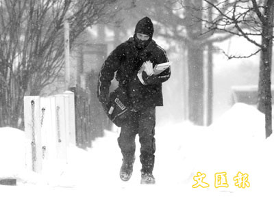 ■一名郵差冒著嚴寒派信。 美聯社