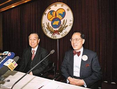 ■鄉議局主席劉皇發(左)與曾蔭權。本報記者劉國權 攝
