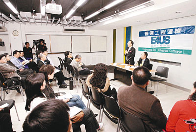 ■梁家傑在普選工程連線的論壇上唱獨腳戲。本報記者潘達文 攝