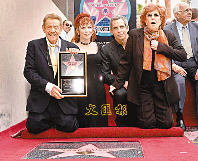 快將會有《翻生侏羅館》在香港上畫的美國當紅笑匠賓史迪拿(右二),前天聯同胞姊Amy(左二)一起慶祝雙親成為荷里活星光大道其中一員,由於那是備受承認的演藝界地位象徵,加上自己新片票房賣座,無論怎樣都要拍張全家幅以作留念吧! ■文:藝能小子 圖:路透社