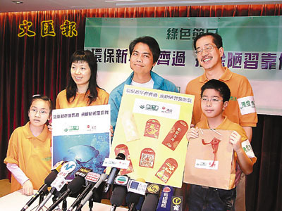 ■鄭睦奇(中)提醒市民改用插口式利是封。 本報記者羅敬文 攝
