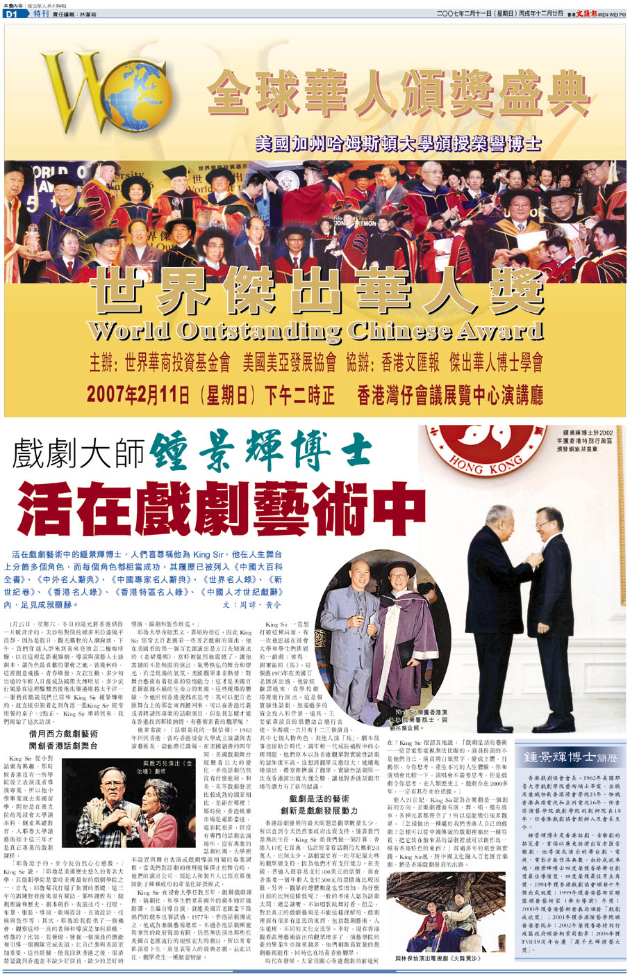 全球華人頒獎盛典 世界傑出華人獎 (2007-02-11) (圖)