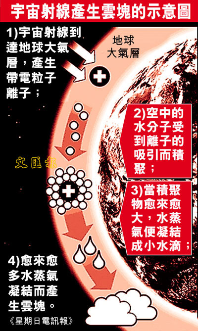 早前一份權威報告指氣候暖化是人類種下的惡果,但丹麥的最新研究嘗試為人類平反。新報告指出,宇宙射線對地球氣候的影響,遠遠高於人類活動;當宇宙射線周期性減少,包圍地球的雲量便會增多,溫室效應隨之惡化。若此理論正確,氣候暖化的問題將要改寫。