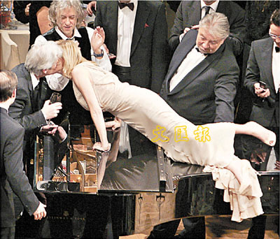 莎朗史東與李察基爾一起出席在柏林舉行的「Cinema for Peace 2007」慈善活動,這也是柏林影展的活動項目之一。席間只見莎姐忽然擒上鋼琴,再慢慢爬向李察基爾發動咀咀攻勢,性感女神出馬,型男也要乖乖接招。莎姐此舉是否在做慈善表演? ■文:飛馬 圖:路透社