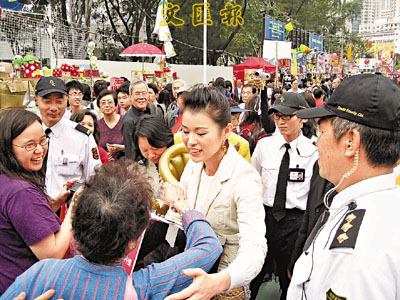 ■胡杏兒昨日出席維園花市,為「救心行動」參加義賣活動。