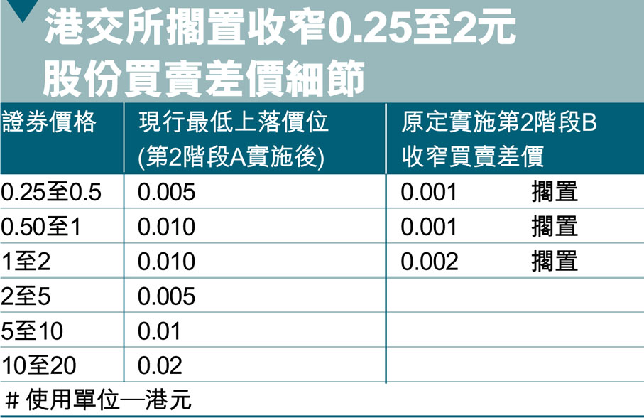 港交所擱置收窄0.25至2元股份買賣差價細節