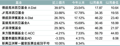 今年以來,亞洲單一國家或地區的股票表現亮麗,不單越南基金則延續了2006年的漲勢,馬來西亞基金表現也毫不遜色。德盛馬來西亞基金、JF馬來西亞基金以及富達馬來西亞基金今年以來升幅均在一成半以上,佔榜首的德盛馬來西亞基金同比升幅更達23.54%。在外資持續流入下,馬來西亞基金今年續漲潛力仍可看好。