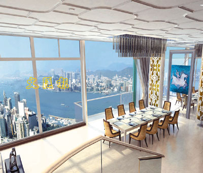 ■名門複式單位「House of The Legend」,位處海拔750呎,海景單位客飯廳樓底高15呎,客飯廳面積達500方呎,居高臨下,維港景色盡收眼底。 資料圖片