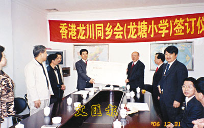 【本報訊】(記者 沈清麗) 為發展廣東河源市龍川縣的教育事業,改善辦學條件,在廣東省教育基金會和香港龍川同鄉會會長吳惠權的倡議下,在龍川同鄉會常務秘書長葉柏明的策劃和龍川縣教育局、縣僑辦的牽線搭橋下,香港龍川同鄉會在龍川縣細坳鎮捐資25萬人民幣興建一所希望小學。該會在龍川縣已經興建了4所小學,均命名為「香港龍川同鄉會小學」。
