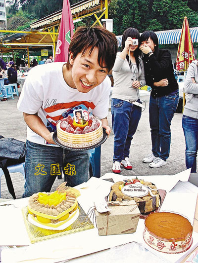 【本報訊】吳彤在情人節前一天(二月十三日)生日,早前二十多個歌迷便為他舉行了生日燒烤派對,歌迷除了分別送上四個生日蛋糕外,更親手自製朱古力及生日卡給他,十分有心思。
