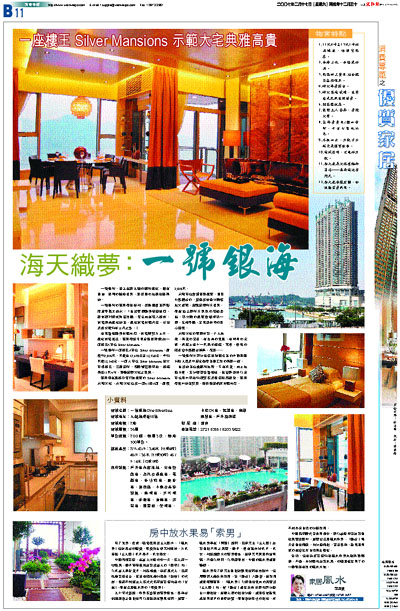 發展商在現樓斥資打造豪華的 Silver Mansions 示範大宅。示範大宅位於一座41樓A座,面積2,016呎。