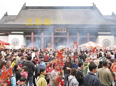 ■車公廟昨日香火鼎盛,全日共有10萬人參拜。本報記者曾慶威 攝