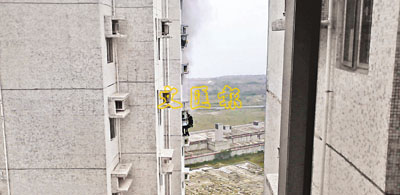 事發昨日下午2時30分,有住客發現肇事單位冒出濃煙,一名男子爬出窗外危站在一部冷氣機頂的石篷上,於是報警。現場消息稱,在消防員到場前,該名男子站在外牆石篷上,冒險跳過約1米外另一冷氣機位的石篷頂,又企圖由窗口爬入單位內,惟窗口有窗花,其間他更一度跣腳,雙腳凌空,險象環生。