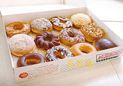 ■Krispy Kreme店內冬甩款式多籮籮,原味糖衣(Original Glazed)、脆糖扭紋(Glazed Cruller)等,還有朱古力、忌廉、士多啤梨、紅莓、蘋果等不同夾心口味。
