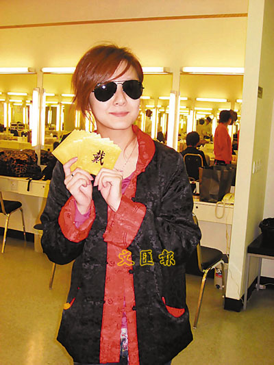 【本報訊】踏入年初四,各行各業逐漸開市,戴夢夢昨晚為《勁歌金曲》擔任表演嘉賓,昨日一早她已入到將軍澳電視城作準備,並主動向在場的記者大派開工利是,她透露自04年入行以來,每年都有派利是的習慣。記者見她所用的利是封個個都印有「戴」字,她即說:「這些利是封是我特別訂造的,所以就有我的姓氏印在上面;其實派利是是一件很開心的事,今年我訂了千個利是封,但是到目前為止仍未派完。」
