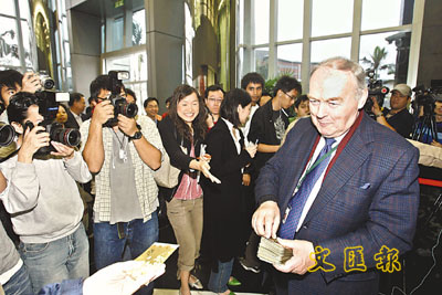 ■詹伯樂向記者及過百名員工派紅封包。本報記者劉國權 攝