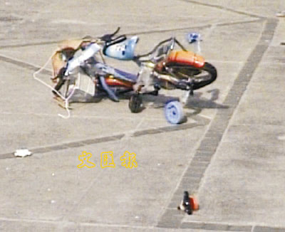 ■當日被躁漢掟落街的單車,墮地損毀,幸未傷及無辜。資料圖片